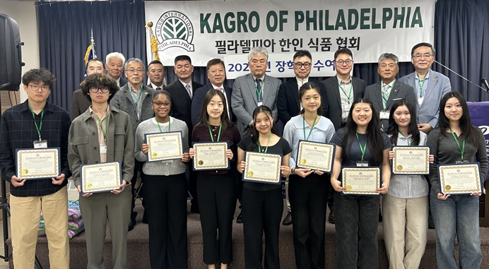 필라델피아 한인식품인협회는 19일 서재필센터 강당에서 2026년도 장학금 수여식을 열고 Kwon Ethan D 등